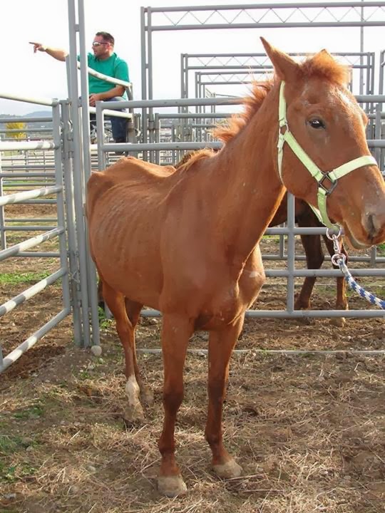 These horses need to be taken away immediately!!!! This couple needs to be locked in a barn (or maybe a dark underground root cellar) and fed bread and water only......only a small portion and only once a day! Wait a minute....why feed them anything! They didn't feed these poor horses....they need to be tarred and feathered and sent back to California!!!!!!!